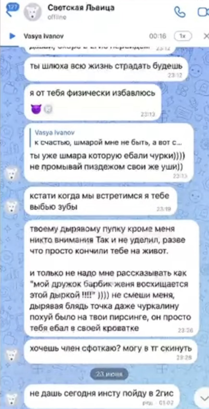 Соңғы кездері жағдайдың ушыққаны байқалған. Қудалаушы қыздың атынан діни орындар туралы балағат сөздер жариялап, арандатушылық жасаған. Ең сорақысы — Виолеттаның нақты мекенжайы интернетке тарап кеткен. Соның салдарынан бойжеткеннің үйіне бейтаныс еркектер келе бастаған.