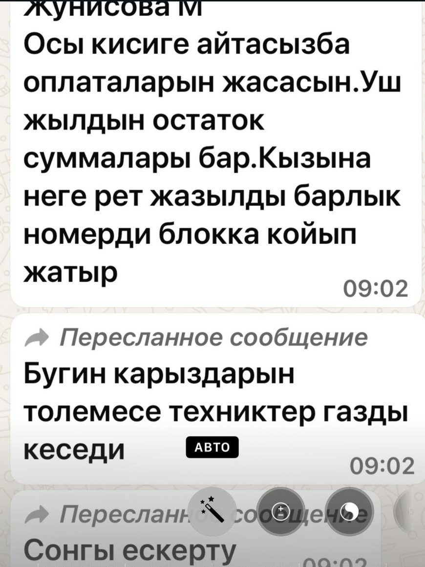 Хатта Мақпал Жүнісованың үш жылдан бері үйіндегі газ ақысын төлемей жүргені жазылған.