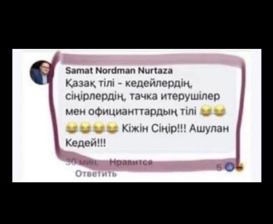 «Қазақ тілі – кедейлердің, сіңлілердің, арба сүйрейтіндер мен даяшылардың тілі! Кіжін сіңір! Ашулан, кедей!» – деп жазған.