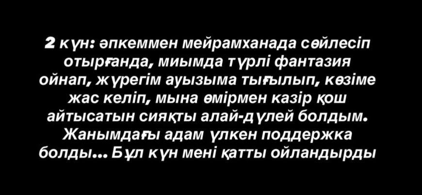 Бұл туралы әнші өзінің Instagram парақшасында жазба арқылы оқырмандарымен бөлісті. Ол өзінің екі күндегі жағдайын сипаттап жазды.