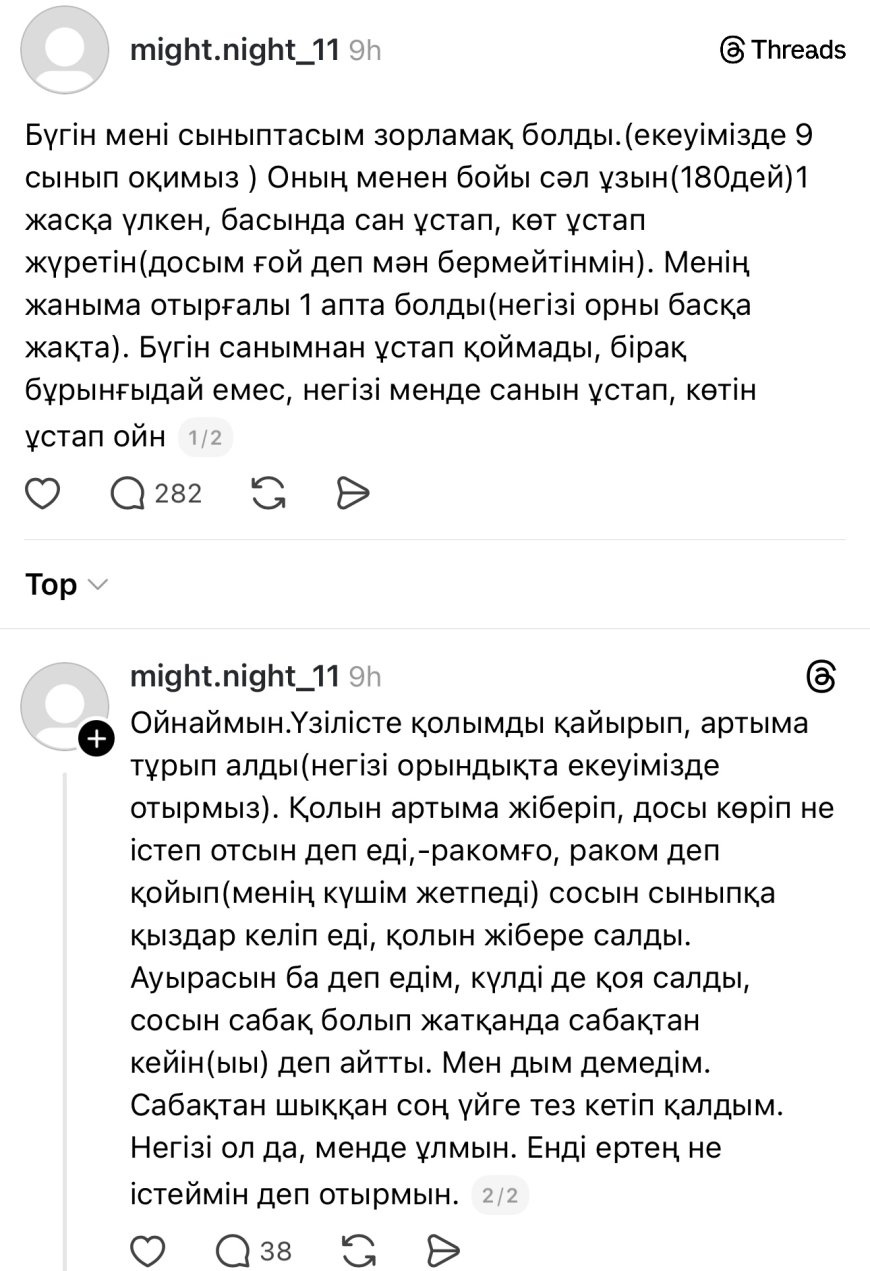«Сыныптасым зорламақ болды»: Желідегі оқушының шарасыз жазбасы қоғамды шулатты